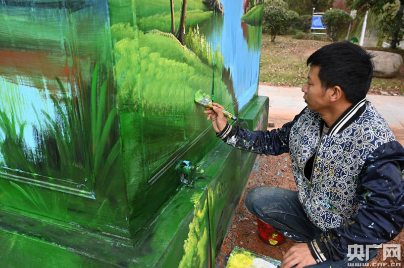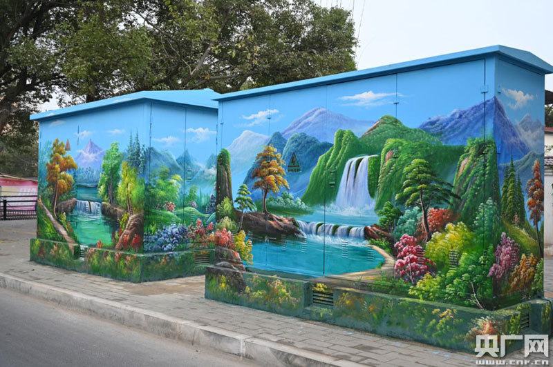 彩繪師正在給配電箱“穿新裝”(央廣網(wǎng)發(fā) 通訊員供圖)