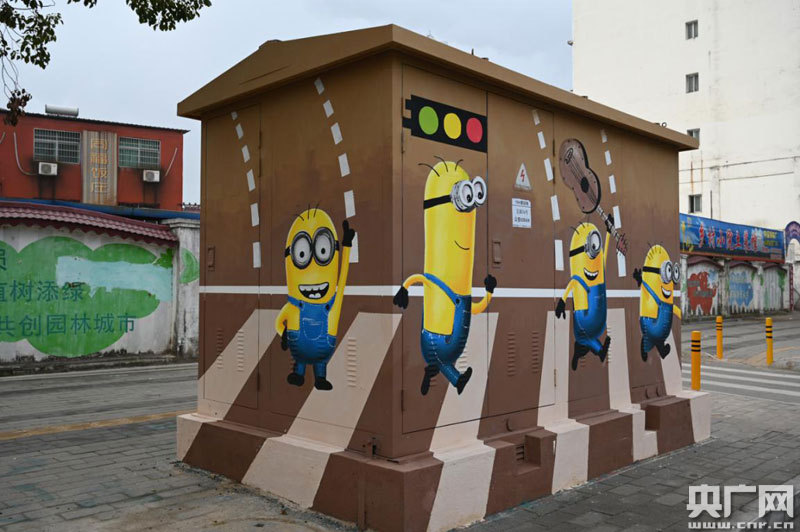 央廣網(wǎng)貴溪12月11日消息(記者王一凡 通訊員王瑩 易。┨崞鸾诸^的配電箱,可能很多人的第一印象都是銹跡斑斑無人問,但你能想到這些配電箱被噴涂上彩繪后已成了街頭一道亮麗的風景線。近日,江西貴溪市街頭的配電箱穿上了“彩色的新裝”,變身“文藝范兒”。