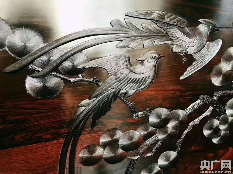 毛淳介紹,"絲翎"源于翎毛,因翎毛畫(huà)是工筆國(guó)畫(huà)的一種門(mén)類(lèi)技法,"絲翎浮雕"保留中國(guó)工筆畫(huà)精致細(xì)膩、形神兼?zhèn)涞奶攸c(diǎn),通過(guò)木質(zhì)載體以淺浮雕的形式立體呈現(xiàn),產(chǎn)生不同的肌理效果,是木雕行業(yè)的一大創(chuàng)新。