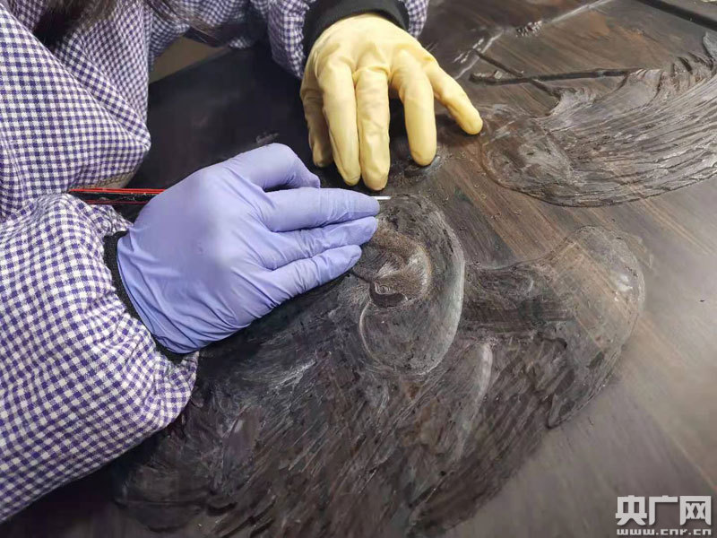 “余江絲翎浮雕”保留中國(guó)工筆畫(huà)精致細(xì)膩、形神兼?zhèn)涞奶攸c(diǎn),通過(guò)木質(zhì)載體以淺浮雕的形式立體呈現(xiàn)(央廣網(wǎng)發(fā) 通訊員供圖)