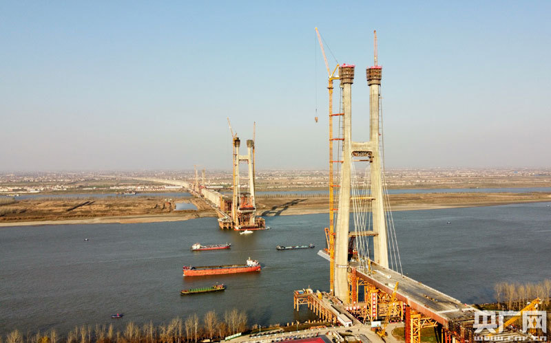 此次封頂?shù)?號墩主塔位于九江側(cè)永安堤防護(hù)堤邊坡上,為H型結(jié)構(gòu),高達(dá)242米,相當(dāng)于80層樓房高。采用液壓爬模分段施工,塔柱共41個(gè)節(jié)段,混凝土澆筑總方量為3.17萬立方米。