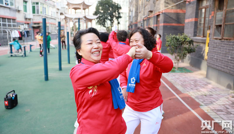 小區(qū)健身操舞隊正在進行活動(央廣網(wǎng)發(fā) 通訊員李軍 攝)