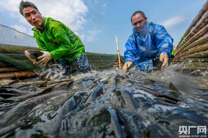 1月28日,在吉安市峽江縣馬埠鎮(zhèn)上蓋村,村民在養(yǎng)殖基地捕魚。 春節(jié)臨近,江西吉安市峽江縣馬埠鎮(zhèn)上蓋村村民將養(yǎng)殖的鮮魚捕撈外銷,供應春節(jié)市場。(央廣網(wǎng)發(fā) 通訊員席麗輝、陳福平 攝)
