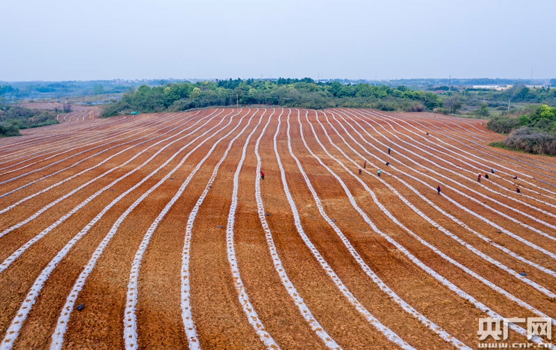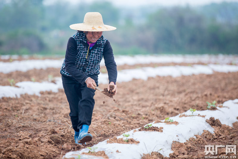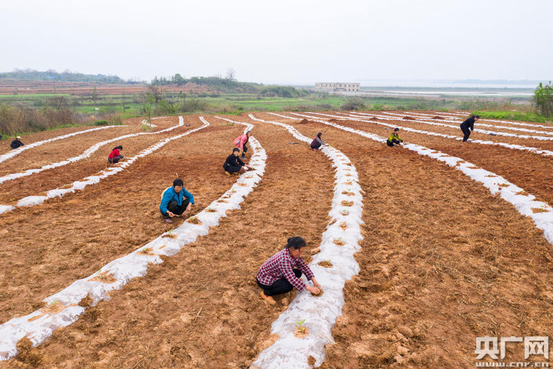 央廣網(wǎng)都昌4月16日消息(記者鄧玉玲 通訊員傅建斌)谷雨時分,在江西九江市都昌縣萬戶鎮(zhèn)西湖村,鄱陽湖畔地膜縱橫的瓜田從空中俯瞰似一條條“跑道”,貧困農(nóng)戶運苗種苗,奔波于“跑道”中間,田間地頭呈現(xiàn)一派繁忙的春種景象。