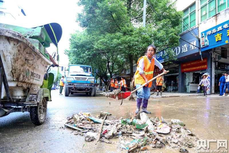 6月12日,江西省峽江縣巴邱鎮(zhèn)環(huán)衛(wèi)工人正在清理街面垃圾。(通訊員曾雙全/攝)