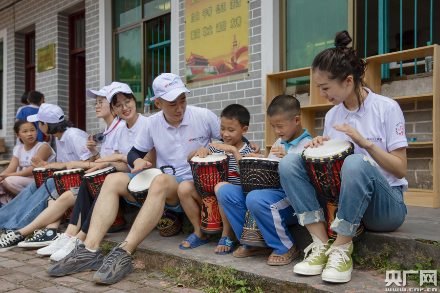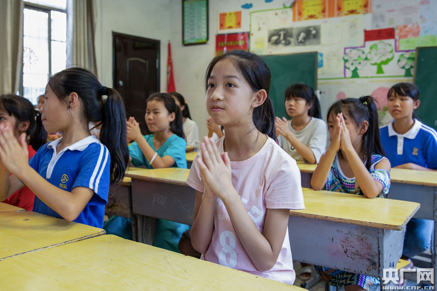房子、大山、河流、魚群……活靈活現(xiàn)地出現(xiàn)在繪畫課孩子們的繪本上;音樂課的孩子們則跟著老師唱起了《最美的太陽》、《明天會更好》……