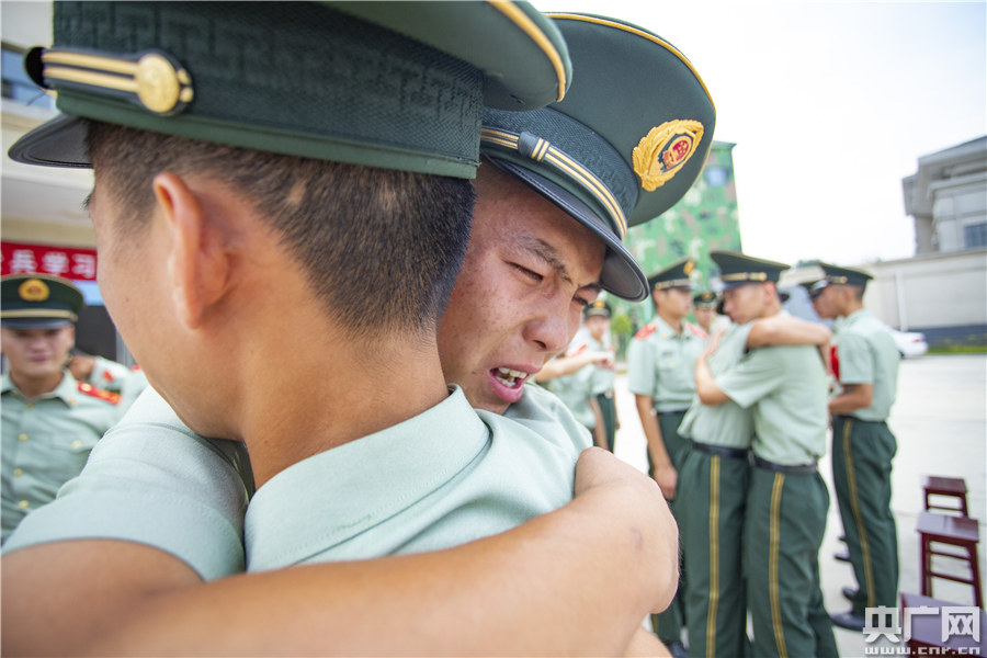 央廣網(wǎng)湖口9月2日消息(記者李竟成 通訊員張玉 吳寶冰)“送戰(zhàn)友,踏征程,默默無語兩眼淚,耳邊響起駝鈴聲……”8月31日,武警湖口中隊(duì)隨著《駝鈴》歌聲的響起,6名光榮退伍的武警官兵哭得像個(gè)孩子,因?yàn)榻裉焖麄兗磳⒏鎰e生活多年的軍營,告別在一起朝夕相處多年的兄弟,內(nèi)心深處有太多的不舍……