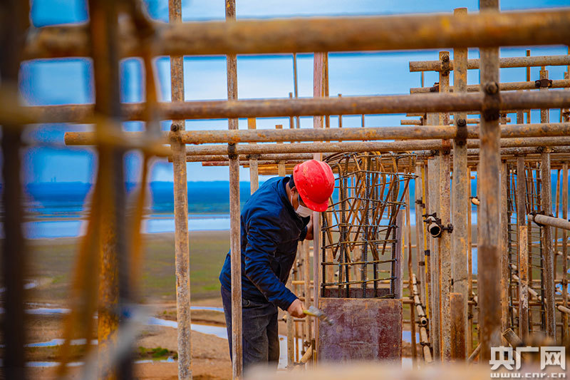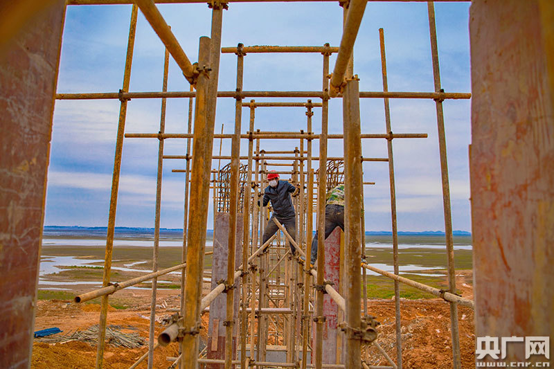 都昌縣南溪圩堤,工人們正在進(jìn)行模板安裝(央廣網(wǎng)發(fā) 通訊員劉洵/攝)
