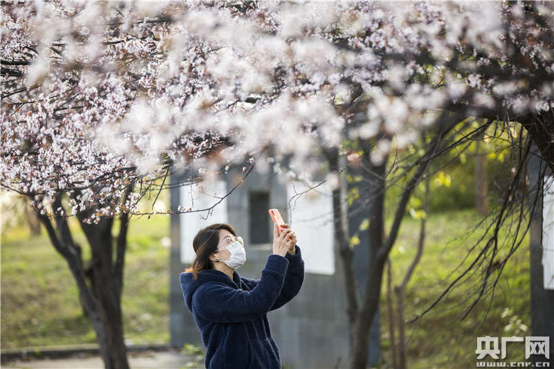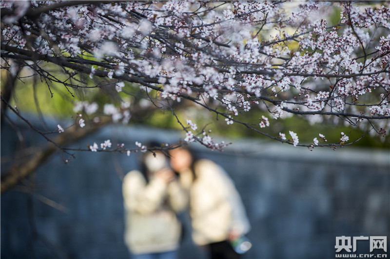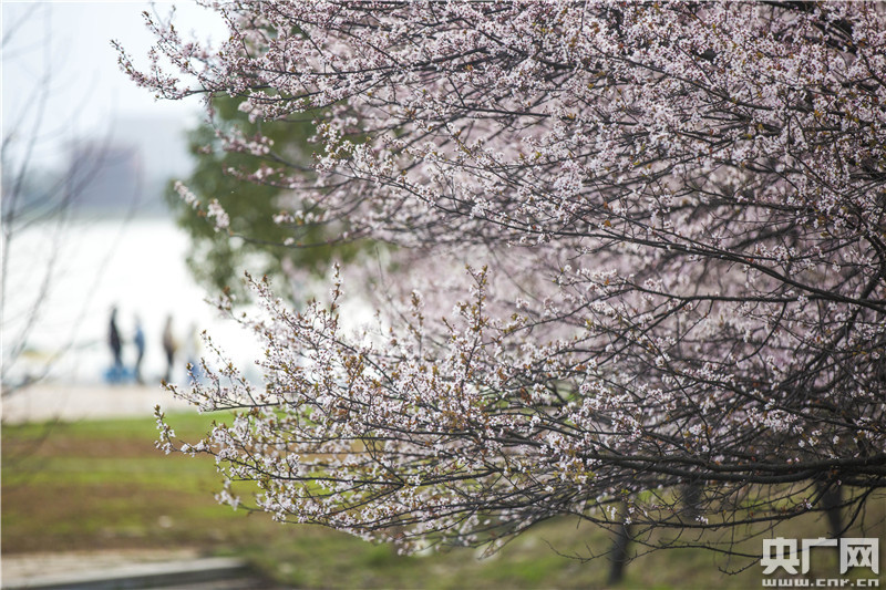 3月1日,在江西省九江市都昌縣東湖畔,游人在賞櫻花。央廣網發(fā) 傅建斌攝