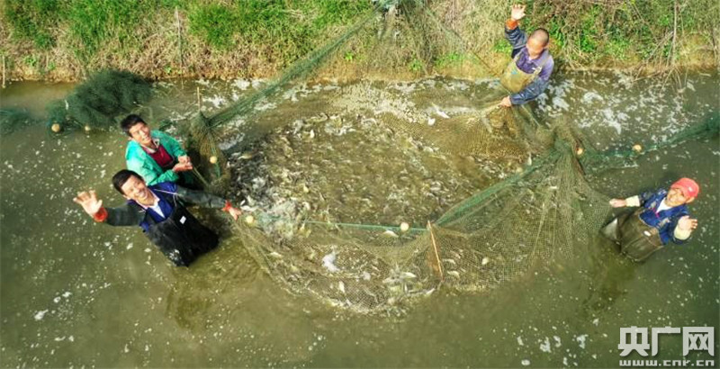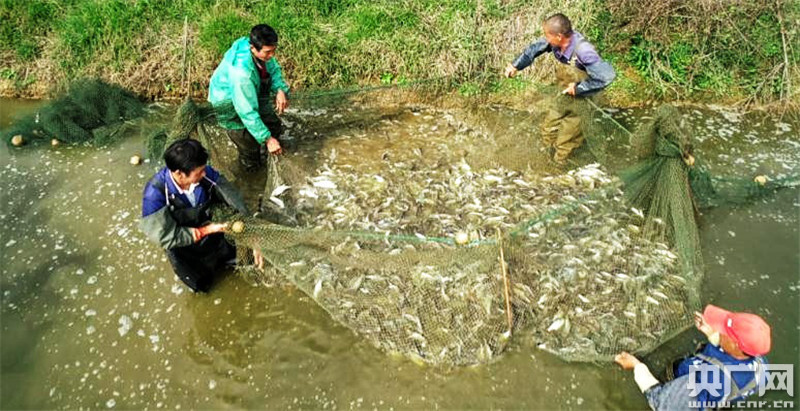 萬安窯頭鎮(zhèn)村民們在做好疫情防控的基礎(chǔ)上,搶抓利好時節(jié),在池塘里撒網(wǎng)捕獲魚苗放養(yǎng)。