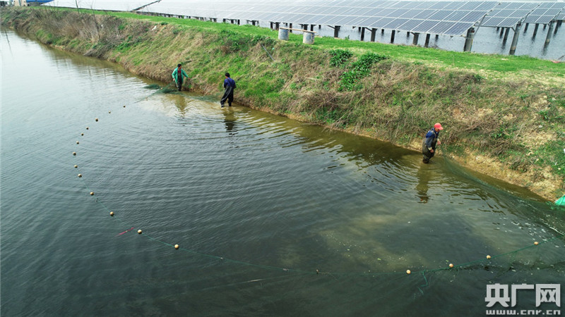 央廣網(wǎng)萬安3月5日消息(記者胡嘯 通訊員郭瑤 陳其龍)又是一年春耕時,在江西省萬安縣窯頭鎮(zhèn)“漁光互補”項目基地,380多畝養(yǎng)殖池塘水面上,一排排的太陽能光伏板一字排開,村民們在做好疫情防控的基礎(chǔ)上,正抓住當前的利好時節(jié),在池塘里撒網(wǎng)捕獲魚苗放養(yǎng),構(gòu)建起了一幅魚躍人歡春耕美的鄉(xiāng)村畫卷。