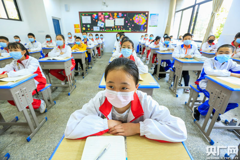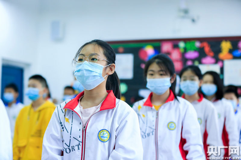 5月11日,在江西省九江市都昌縣湖濱學(xué)校,七年級(jí)學(xué)生在上第一堂課