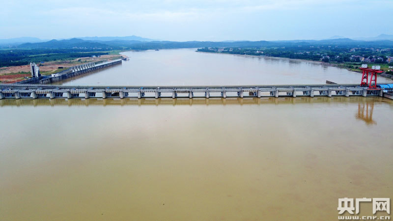6月3日,無(wú)人機(jī)俯瞰雨后的贛江石虎塘大壩庫(kù)區(qū),河水上漲
