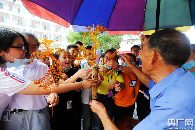 6月9日,江西省吉安市安福縣安福中學(xué)學(xué)生在觀看非遺表演(央廣網(wǎng)發(fā) 通訊員劉麗強(qiáng) 攝)
