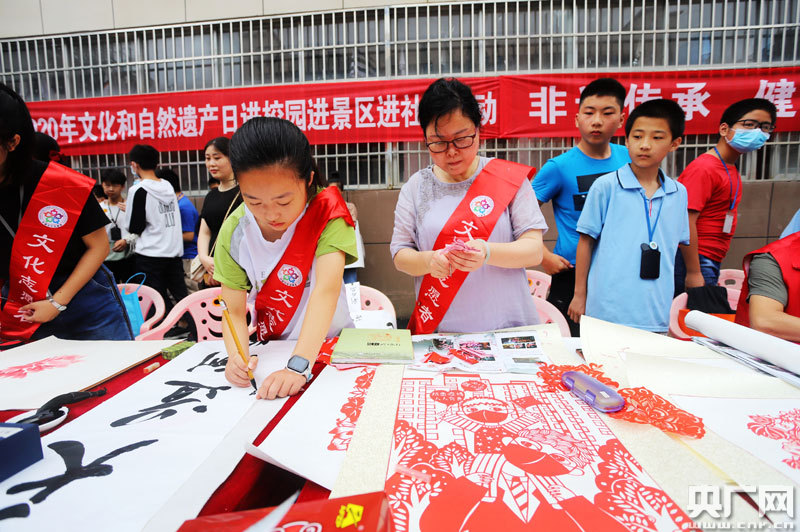 6月9日,江西省吉安市安?h安福中學(xué)學(xué)生在觀看非遺表演(央廣網(wǎng)發(fā) 通訊員劉麗強(qiáng) 攝)