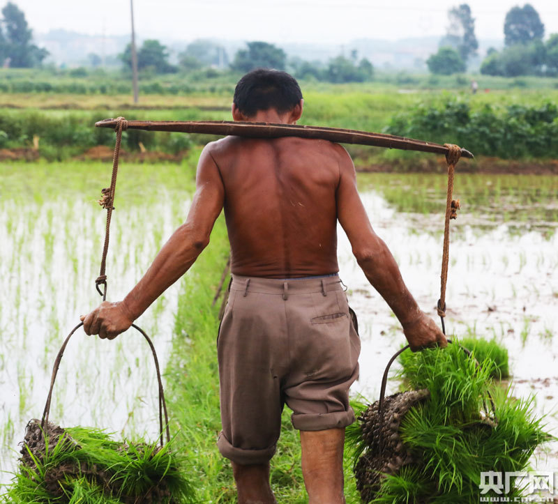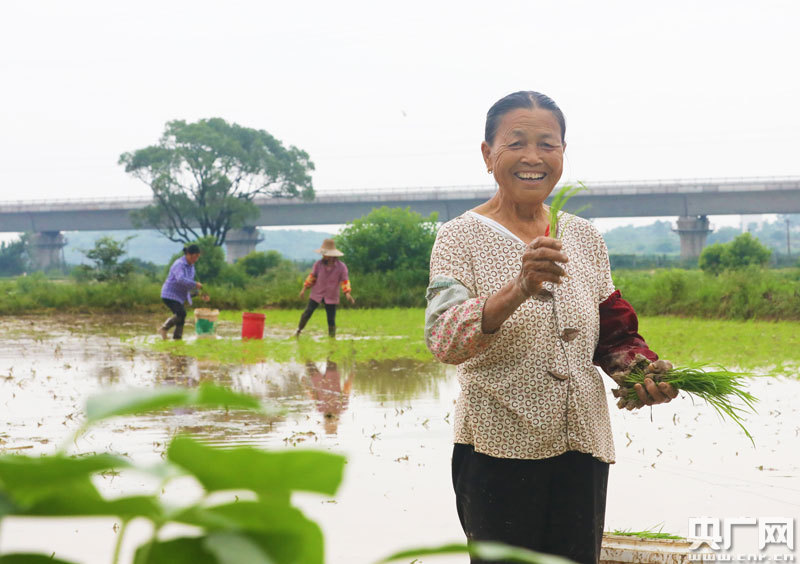吉州區(qū)曲瀨鎮(zhèn)麥嶺下村農(nóng)戶正在田間栽插晚稻秧(央廣網(wǎng)發(fā) 通訊員李軍 攝)