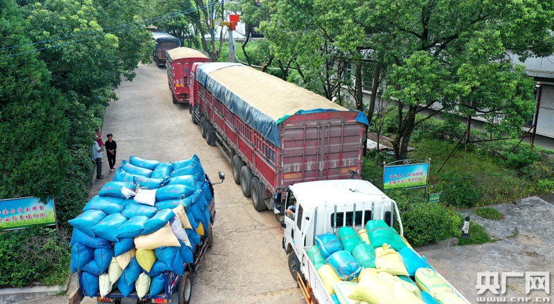 8月3日,江西省吉安市吉水縣朱山國家糧食儲備庫,前來交糧的車輛排成了長龍