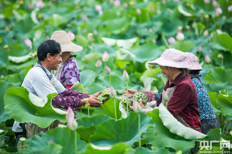 眼下正是蓮子采摘期,位于江西省九江市都昌縣大樹鄉(xiāng)的生態(tài)白蓮種植基地,農(nóng)民忙著采摘蓮蓬。