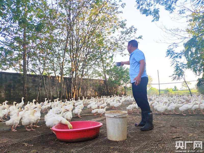 劉葵達(dá)在喂鵝(央廣網(wǎng)發(fā) 通訊員供圖)