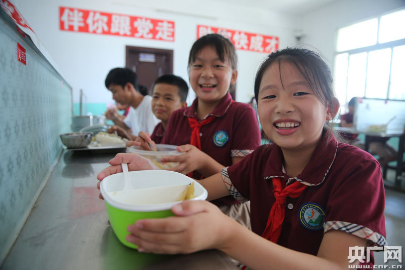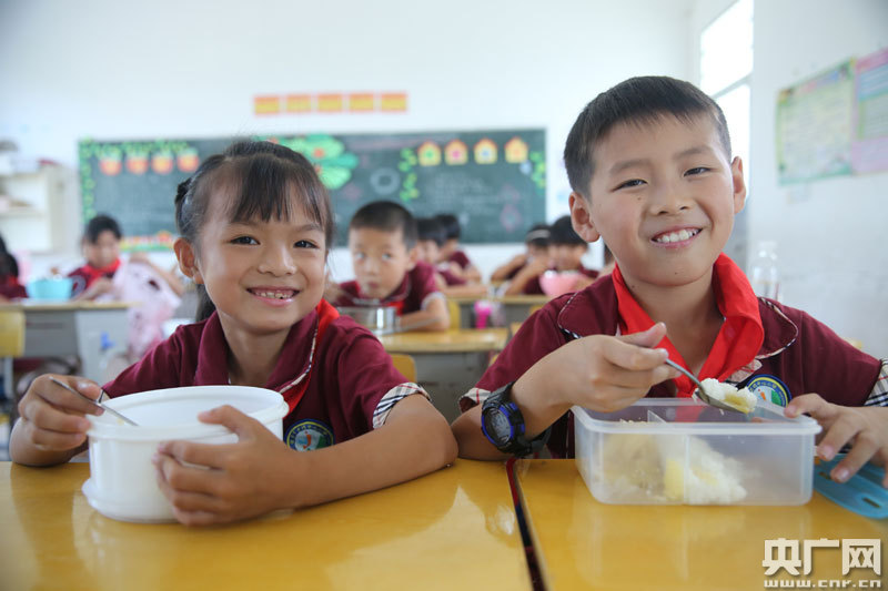 9月7日,江西省瑞昌市武蛟中心小學(xué)“免費(fèi)午餐”正式開(kāi)餐,學(xué)生們正在開(kāi)心地吃午餐。