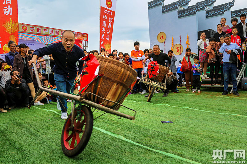 央廣網(wǎng)都昌9月22日消息(記者鄧玉玲 通訊員陳扶南 李韌)又是一年豐收景。江西都昌大沙鎮(zhèn)沈家垅新光明農(nóng)場(chǎng)人聲鼎沸,2020年“中國(guó)農(nóng)民豐收節(jié)”都昌活動(dòng)精彩紛呈。農(nóng)民趣味運(yùn)動(dòng)會(huì)環(huán)節(jié)讓現(xiàn)場(chǎng)群眾熱情高漲,“送糧路上、渾水摸魚(yú)、搶鴨大戰(zhàn)”等精彩比賽輪番上演,人們?cè)谙矐c的氛圍中分享傳遞豐收的喜悅。