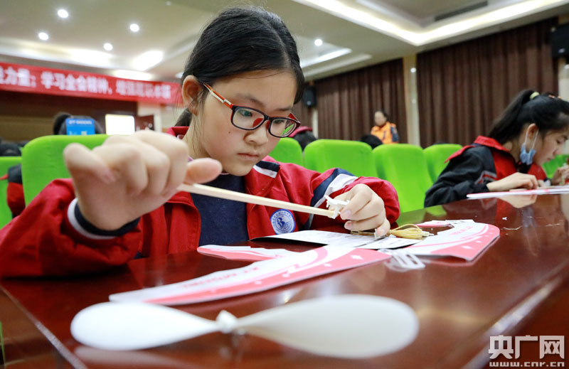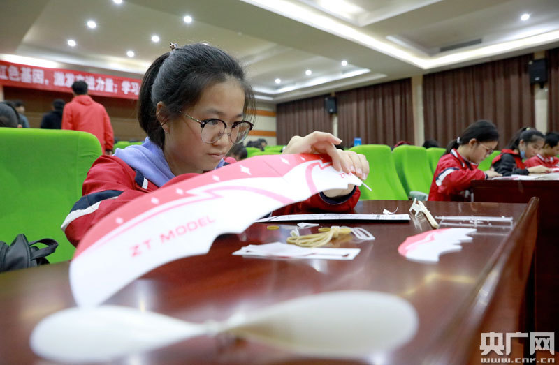 學(xué)生們正在制作航空模型(央廣網(wǎng)發(fā) 通訊員供圖)