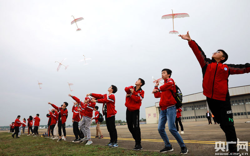 學(xué)生正在放飛自己親手制作的航模(央廣網(wǎng)發(fā) 通訊員供圖)