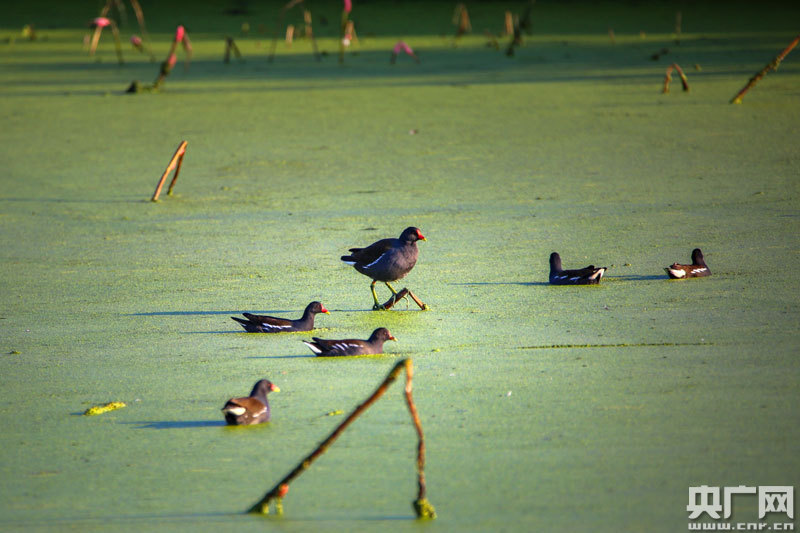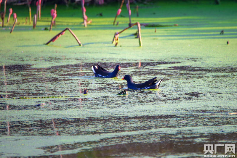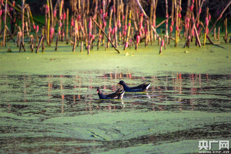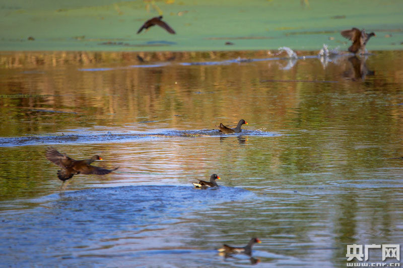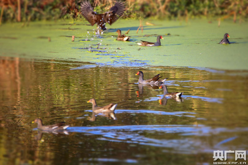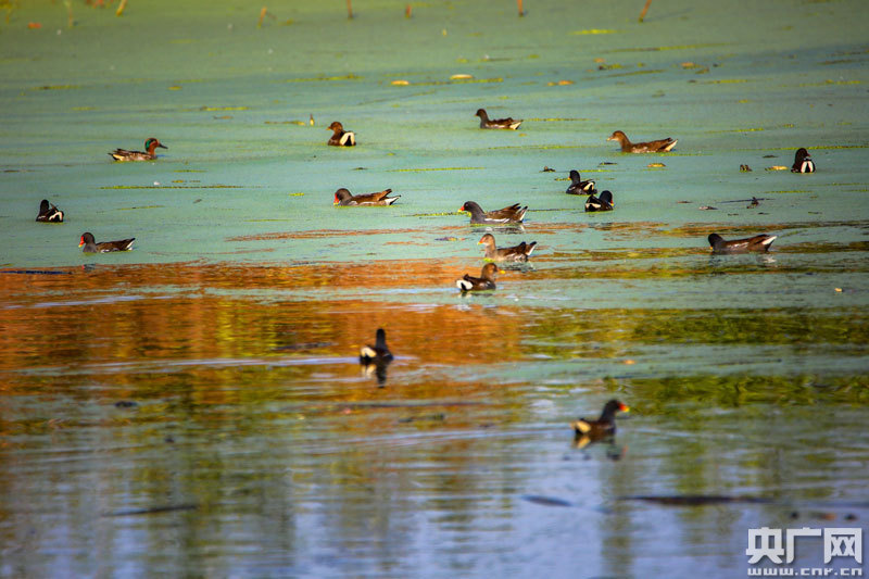 近百只野生水鳥(niǎo),在這里覓食、嬉戲(央廣網(wǎng)發(fā) 通訊員攝)