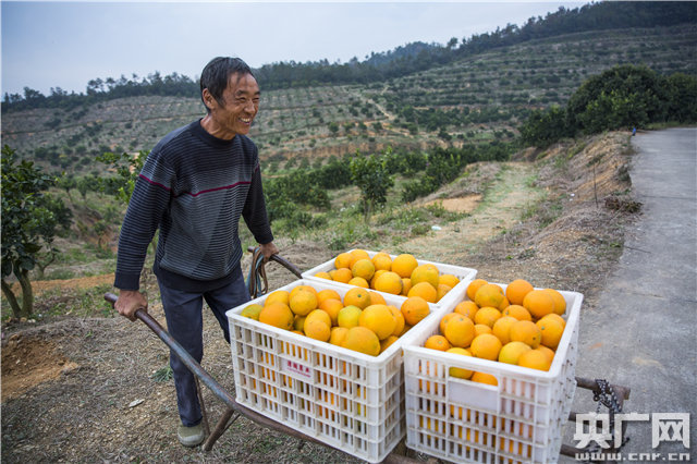 11月16日,江西省九江市都昌縣土塘鎮(zhèn)潭湖村種植戶在運送臍橙。(央廣網(wǎng)發(fā) 通訊員傅建斌 攝)