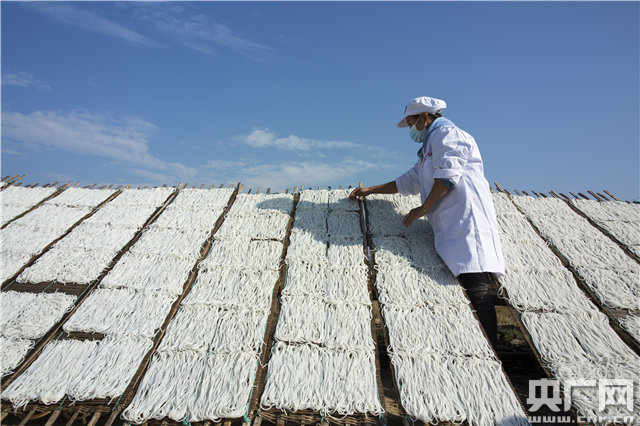 11月16日,江西省九江市都昌縣陽峰鄉(xiāng)金星村村民在晾曬制作好的米粉條。(央廣網(wǎng)發(fā) 通訊員傅建斌 攝)