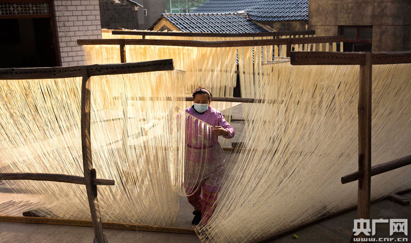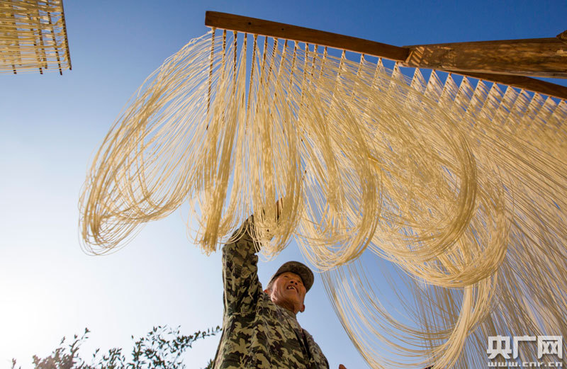 村民在制作手工面(央廣網(wǎng)發(fā) 通訊員傅建斌 攝)
