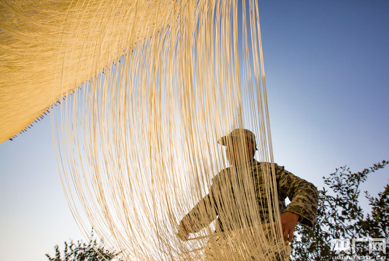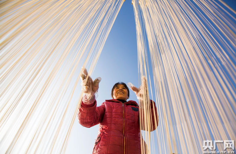 連日來,江西省九江市都昌縣左里鎮(zhèn)左里居委會李秦亮村村民抓住晴好天氣制作手工拉面,家家戶戶門前晾曬的絲面,宛若銀絲在風(fēng)中飄蕩,成為冬日一道別致的鄉(xiāng)村景觀。該村手工制面歷史悠久,因口味獨特受市場歡迎,為當?shù)剞r(nóng)民增加收入,助力鄉(xiāng)村振興。