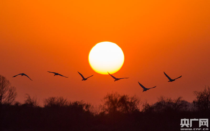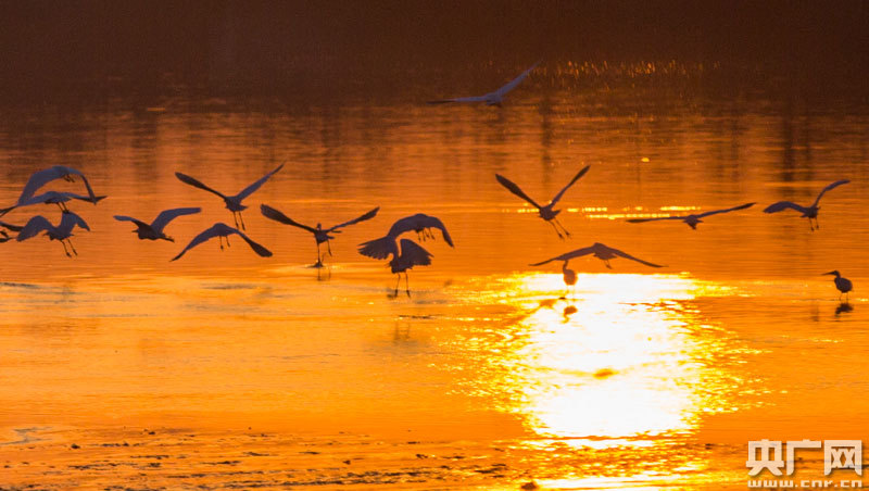 都昌縣蘇山鄉(xiāng)雷山村拍攝的夕陽下的白鷺(央廣網(wǎng)發(fā) 通訊員傅建斌 攝)