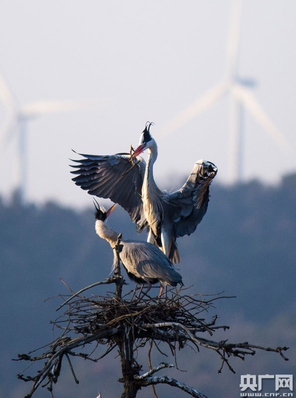 央廣網(wǎng)都昌1月15日消息(記者王一凡 通訊員傅建斌)近日,在位于鄱陽湖畔的江西省九江市都昌縣蘇山村雷山村蒼鷺繁殖基地?zé)狒[起來,大批蒼鷺、白鷺等夏候鳥提前飛抵,給冬日的山村增添一份生機。據(jù)了解,今年來鄱陽湖區(qū)繁殖的夏候鳥較往年提前半個月時間,數(shù)量也增加兩成以上。