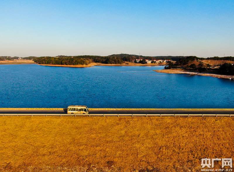 近日,無人機航拍江西省吉州區(qū)新S442公路橫穿田野,與碧藍的湖水相映成趣