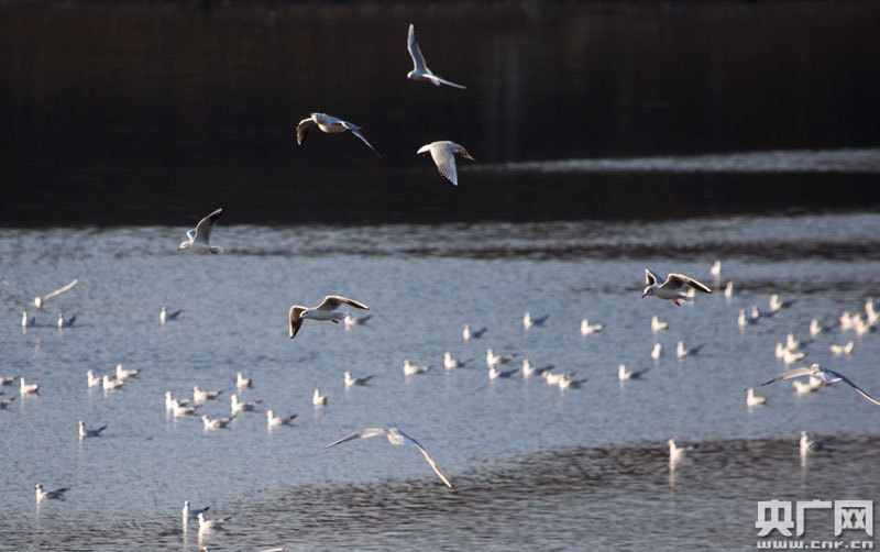 1月19日,江西省九江市都昌縣大沔池湖面上飛翔的鷗鳥(央廣網(wǎng)發(fā) 通訊員傅建斌 攝)