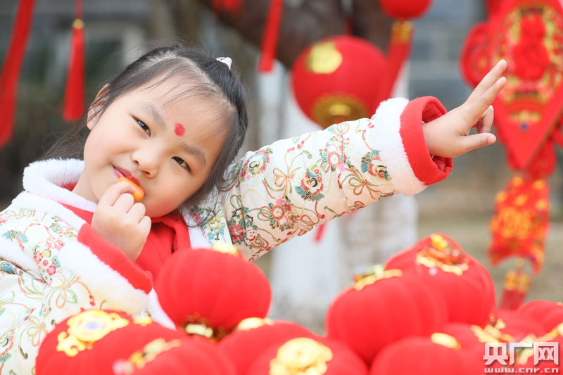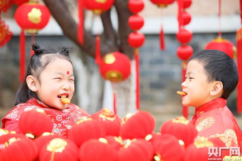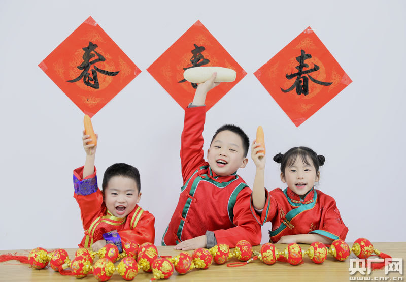 2月2日,江西省吉安市吉州區(qū)北門街道螺湖社區(qū)的小朋友們穿著喜慶,吃蘿卜“咬春”(央廣網(wǎng)發(fā) 通訊員李軍 攝)