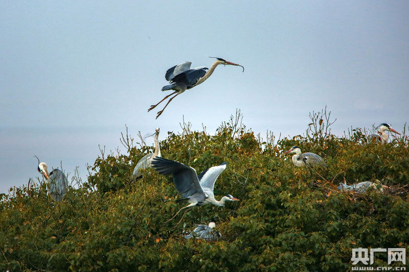 央廣網都昌2月5日消息(記者王一凡 通訊員陳扶南)春節(jié)臨近,江西省都昌縣蘇山達子咀村邊的樹林里,蒼鷺比往年來得更早,熱熱鬧鬧而又擁擠地棲息在這里。隨著每天黎明的到來,鳥鳴聲和拍打翅膀的聲音,在林子里此起彼伏,一波蓋過一波。