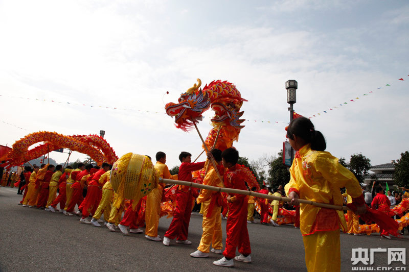 千人踩街活動(dòng),少年揮舞的紅黃雙龍(央廣網(wǎng)發(fā) 胡斐/攝)