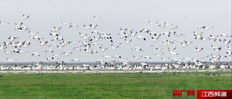 鄱陽湖濕地白鶴歡聚(央廣網(wǎng)發(fā) 九江市林業(yè)局供圖)