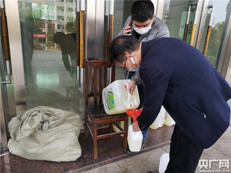 邊打電話邊給村委發(fā)放防疫物資