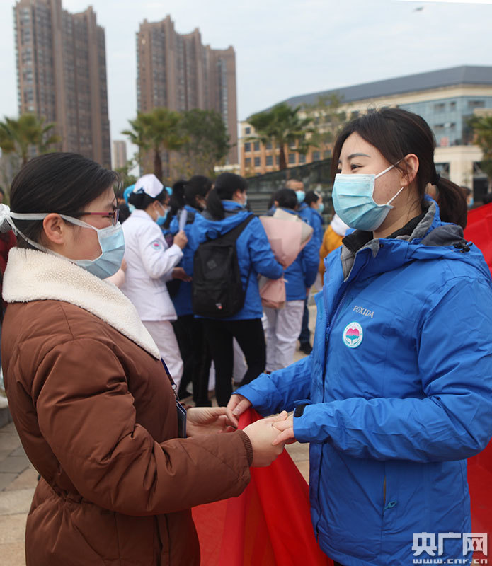 母親依依不舍送女兒出征支援湖北抗疫