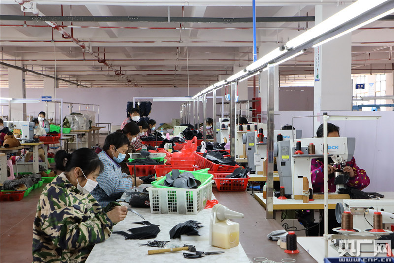 “來這里上班包教包會,新人前三個月還有1800元的保底工資,我以后就在家門口上班了!比ツ赀在廣東打工的新員工黃祖江見到記者停了下縫紉機,用手推了推鼻梁上松動的口罩說道。