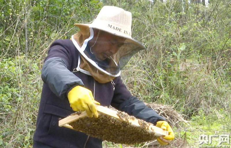 央廣網(wǎng)永新3月24日消息(記者王一凡 通迅員李平 尹紫騰)夕陽(yáng)最后一絲余暉被1391米的秋山擋下,山腳下,永新縣臺(tái)嶺鄉(xiāng)禾山村的村民劉定良也將蜂箱里多余的蜂蠟清除完畢。抹去額頭的汗水,直起腰身,看到身后一排排的蜂箱,劉定良會(huì)心一笑:“今年天氣不錯(cuò),花期長(zhǎng),春季花蜜至少增長(zhǎng)三成 ”。