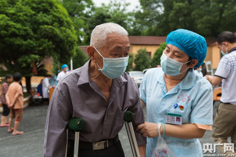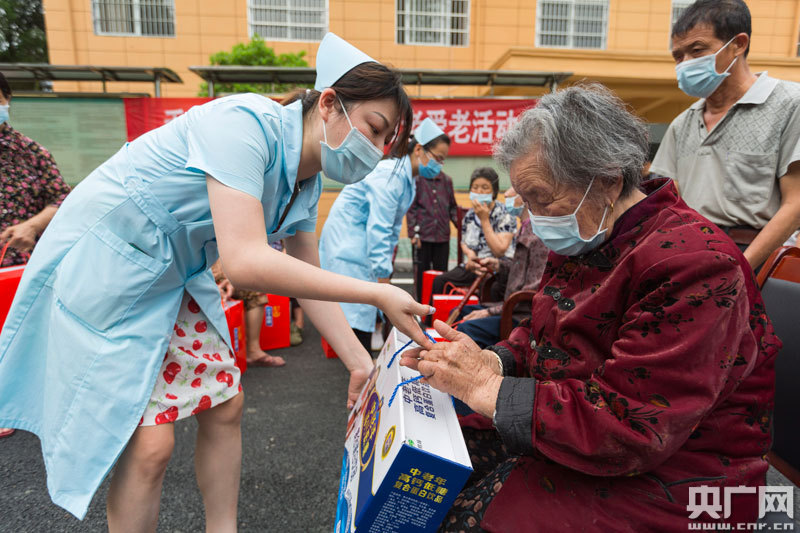 5月11日,江西省永新縣禾川鎮(zhèn)敬老院,該鎮(zhèn)衛(wèi)生院護(hù)士志愿者贈(zèng)送營(yíng)養(yǎng)品給老人