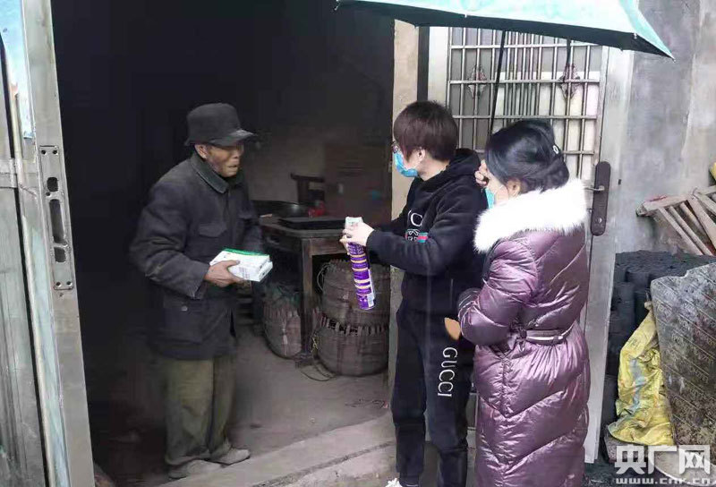 萬璇為貧困戶江庚生送上食品和防疫物品