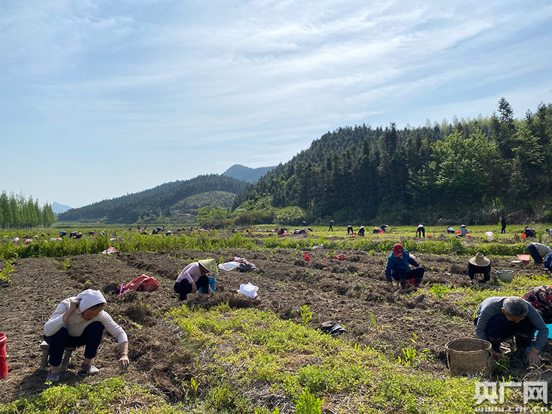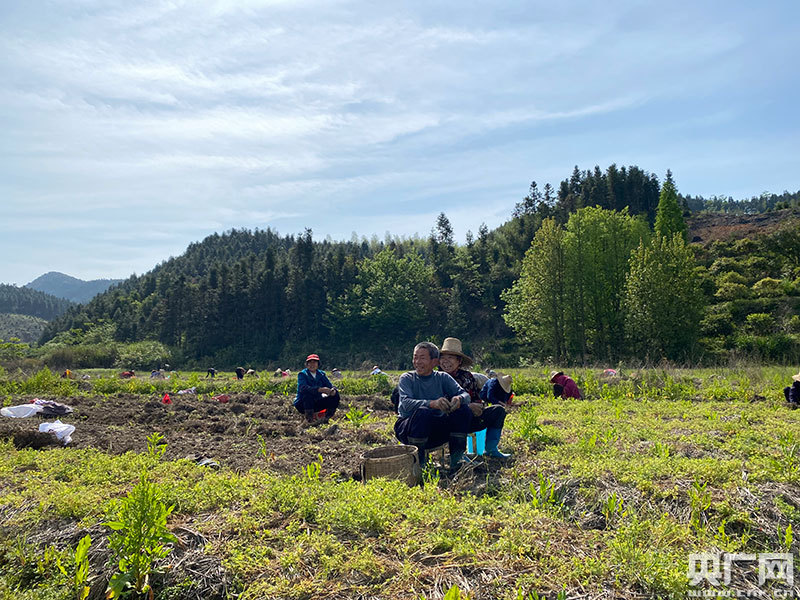 田家少閑月,五月人倍忙,正是中草藥夏天無收獲的季節(jié),在潭湘村產(chǎn)業(yè)扶貧基地上,廣闊的田野里上百人正在辛勤勞作,他們熟練地?fù)炱鹣奶鞜o放到身邊的背簍中,經(jīng)過挑揀、清洗、過稱之后,就能領(lǐng)到當(dāng)天的酬勞。潭湘村誠義種植專業(yè)合作社不只是該村的產(chǎn)業(yè)扶貧基地,還是全縣五個就業(yè)扶貧車間其中之一。潭湘村貧困戶何莊牙身體不好,以往也沒什么收入,如今他“搖身一變”成為扶貧車間的工人,閑時做做雜事,忙時跟青壯年勞力一起干些力所能及的農(nóng)活。