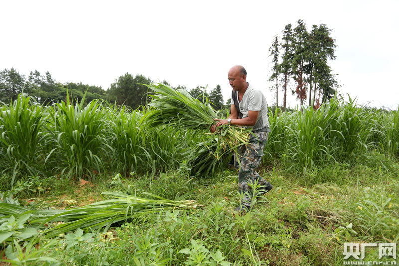 脫貧戶(hù)饒勝文在割草