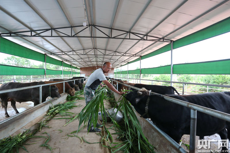 脫貧戶(hù)饒勝文在喂牛