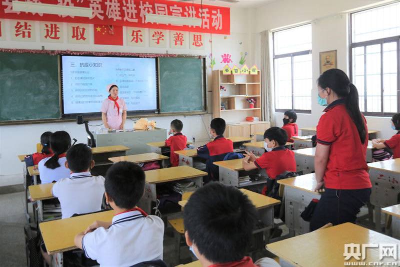 日前,在江西省峽江縣學(xué)校校園里,幾位特殊身影的出現(xiàn)讓學(xué)生們驚喜不已。當(dāng)天,峽江縣人民醫(yī)院的白衣天使劉佳、袁小蓮、袁雨嬌3位援鄂英雄,走進(jìn)實(shí)驗(yàn)二小、實(shí)驗(yàn)小學(xué)、福民學(xué)校,為孩子們講述戰(zhàn)“疫”經(jīng)歷。她們的到來(lái),讓校園頓時(shí)沸騰起來(lái),師生們把最熱烈的掌聲獻(xiàn)給英雄。